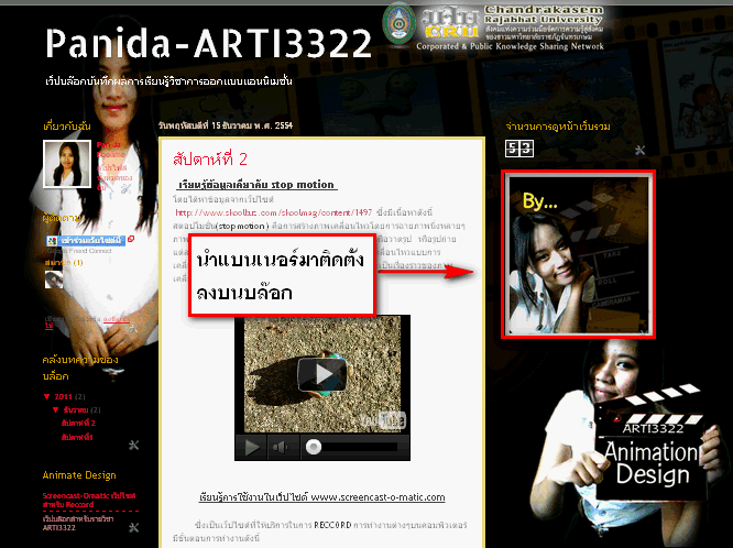 4. เมื่อเส็จแล้วนำแบนเนอร์ที่ได้มาติดตั้งบนบล๊อกประจาำวิชา ARTI3322