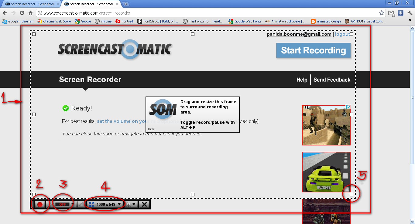 เรียนรู้การใช้งานในเว็ปไซด์ www.screencast-o-matic.com